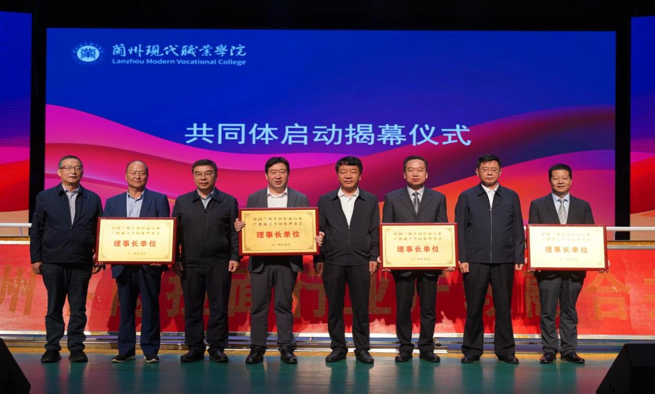 揭牌仪式上,甘肃省人力资源和社会保障厅副厅长何永强、甘肃省商务厅副厅长汪德元、甘肃省教育厅二级巡视员牛辉峰、甘肃省农业大学副校长李广、市政协副主席高永健等领导,以及兰州市教育局、市科技局、市人社局、市农业农村局、市商务局、市文旅局和永登县政府领导共同为“中国兰州牛肉拉面行业产教融合共同体”揭幕。同时,兰州工业研究院苏生魁院长、甘肃农业大学现代产业学院张丽院长、甘肃金味德拉面文化产业集团梁亚楠总经理、兰州现代职业学院财经商贸学院党总支书记姜旗上台,为兰州牛肉拉面产业研究院揭牌。