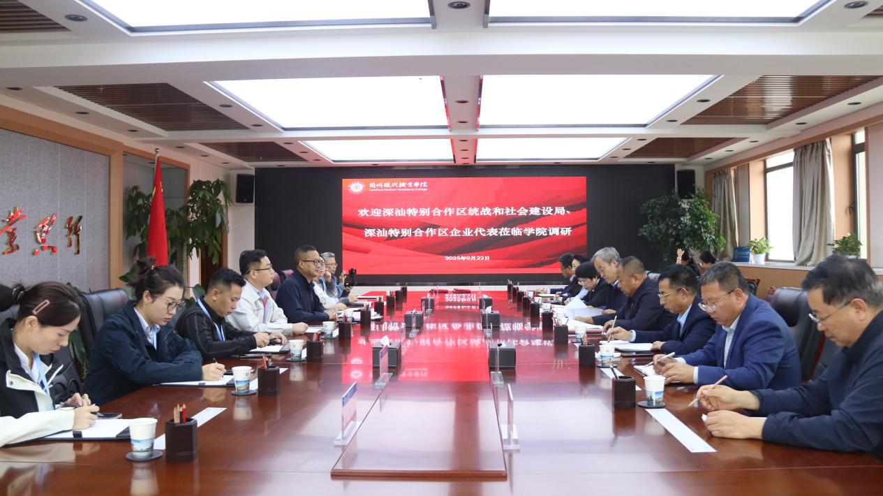 9月22日,深汕特别合作区统战和社会建设局副局长王昌稳携深汕特别合作区企业代表等一行八人莅临我院,就深化政校企合作,探索协同育人模式,开展实地考察交流与座谈。学院党委副书记、院长魏永胜,党委副书记、副院长王茂昌,党委委员、副院长苏瑞琴,理工学院负责人及学院相关部门负责人参加座谈。