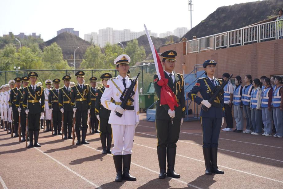 大会在国歌声中启幕,新生以整齐队列、刚劲战术演练展现青春风貌。