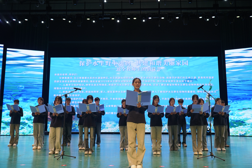活动现场,百人倡议签名仪式率先点燃氛围,学生代表诵读倡议书,号召青年群体学习保护知识、抵制非法行为、减少塑料垃圾,争做水生野生动物保护“行动者”。农林科技学院协同承办单位,通过设置科普展板、发放宣传手册、播放宣传片等形式,让师生直观了解水生野生动物保护要点;启动仪式特邀甘肃农业大学刘哲教授及兰州极地海洋世界、兰州海洋公园科普导师带来3场专题讲座,用鲜活案例解读保护意义。