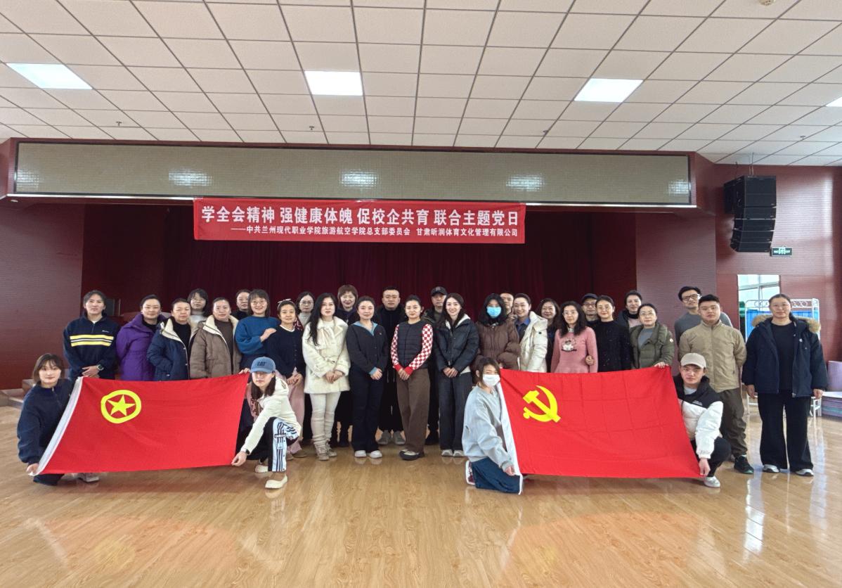 近日,旅游航空学院与甘肃昕润体育文化公司联合举办主题党日。校企党员及实训学生参与,活动涵盖理论学习、肩颈放松教学、健康检测体验等内容,以党建搭台深化产教融合,推动校企资源共享、优势互补。
