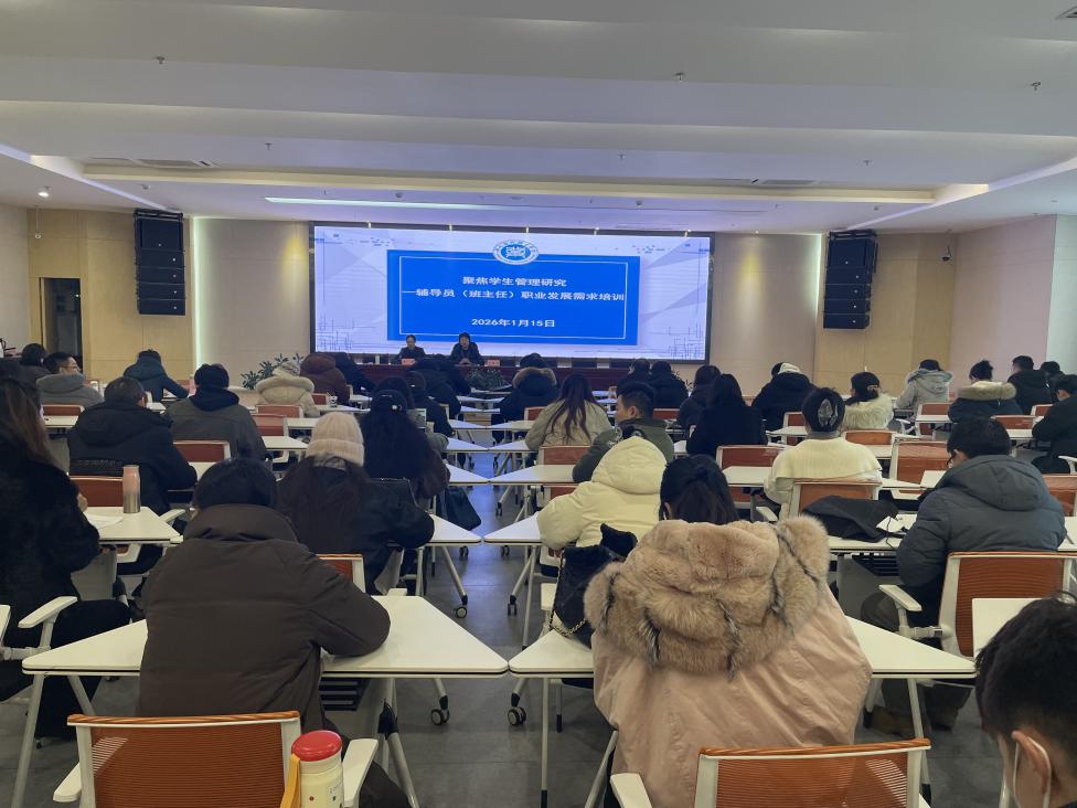 1月15日9:00,我院在图书馆六楼会议室举办“聚焦学生管理研究-辅导员(班主任)职业发展需求培训”,各二级学院分管学生工作副院长、学工办全体人员及辅导员、班主任共300余人参会。