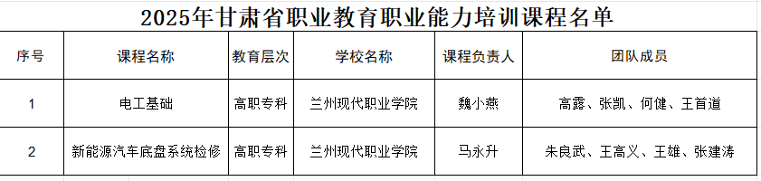 近日,甘肃省教育厅发布《关于2025年甘肃省职业教育精品在线课程和职业能力培训课程认定结果的公示》,我院申报的6门精品在线课程和2门教育职业能力培训课成功入选省级课程名单。此次评选全省共认定100门职业教育精品在线课程和40门教育职业能力培训课,学院以8门入选的优异成绩并列全省第三,彰显学院在职业教育课程建设与教学改革领域的扎实成效。