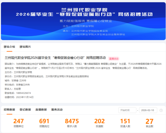 为积极响应教育部“寒假促就业暖心行动”号召,抢抓毕业生求职择业关键期,我院于2026年1月27日至2月10日,以“蓄力赋能强服务,寒假暖心促就业”为主题,为2026届毕业生提供了“不断线、不打烊、更暖心”的就业服务。