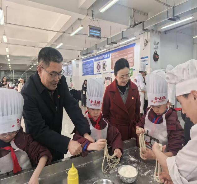 近日,继续教育学院联合兰州市财税学校党支部等开展牛肉面制作研学活动,党员与小学生共同参与。师生参观了解牛肉面非遗文化,在专业指导下实操拉面技艺,党员全程亮身份提供服务保障。活动融合党建、非遗传承与劳动教育,厚植劳动情怀,实现多重育人目标。