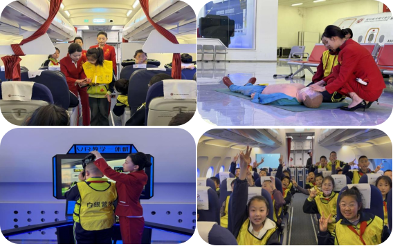 近日,景泰县两校师生走进旅游航空学院开展红色航空研学。学生沉浸式体验值机、A320模拟舱、VR飞行及应急急救实训,近距离感受航空文化。学院以实训基地赋能社会育人,激发青少年航空兴趣,助力逐梦蓝天。
