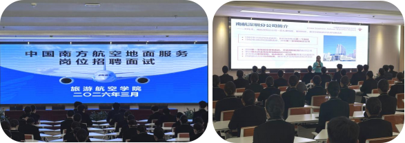 近日,南方航空深圳分公司在旅游航空学院举办专场招聘面试。学院以党建引领校企精准对接,围绕岗位需求、人才培养深化合作。面试面向2026届毕业生,开放地面服务、客舱服务等优质岗位,考核专业素养与综合能力,为学生拓宽高质量就业渠道,助力民航人才培养。