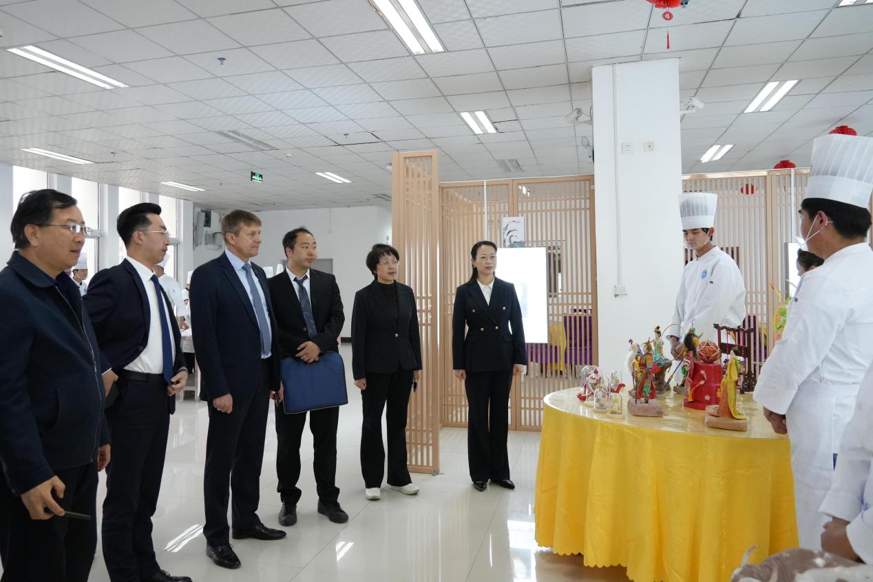 会前,与会领导和嘉宾在学院领导的陪同下,参观了“中白国际语言文化交流中心”、留学生宿舍、新能源汽修车间、大学生活动中心创意园、牛肉拉面产业学院及烹饪实训室,切身感受了学院在推进产教融合、培养高素质技能人才方面的创新实践与成效。