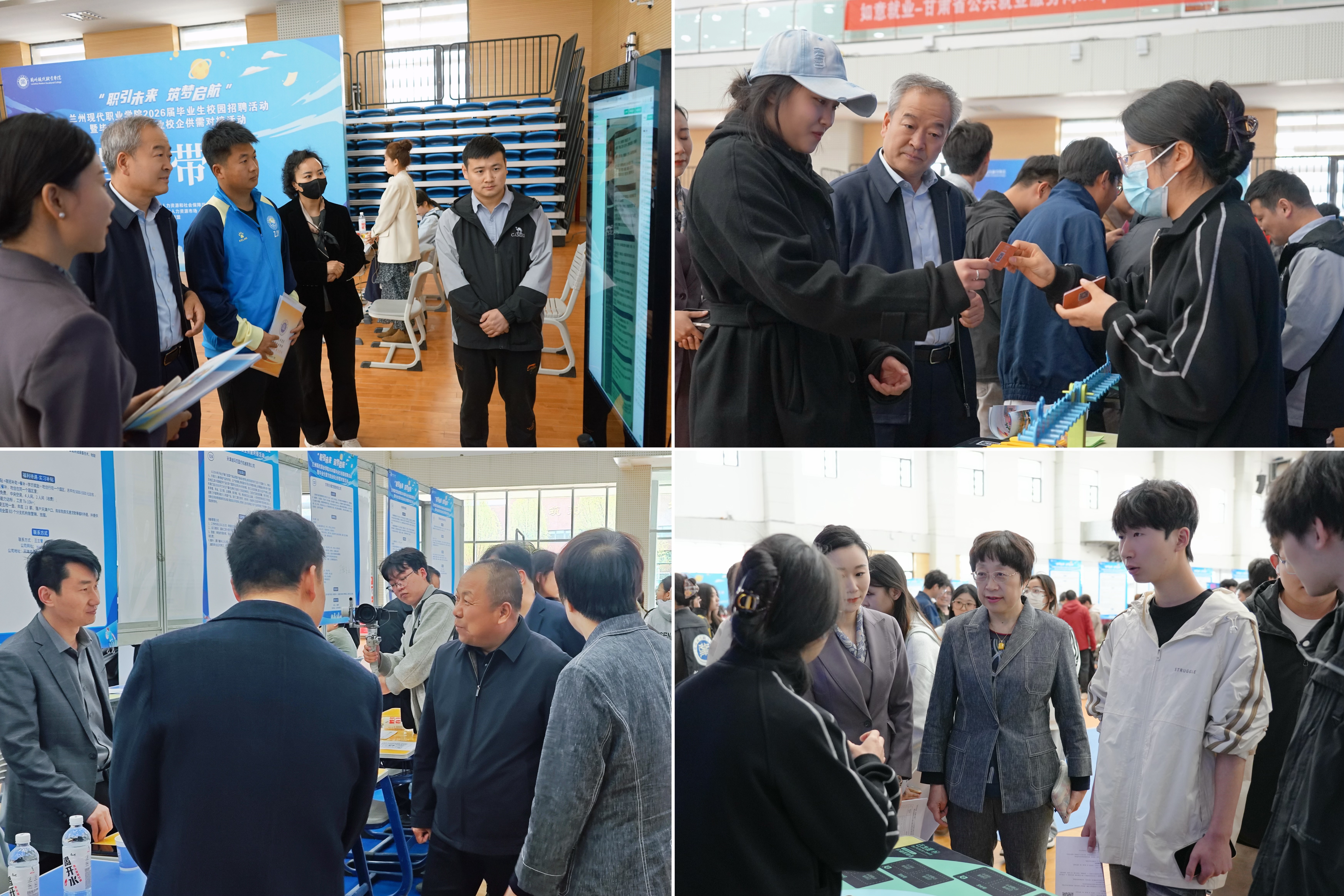 甘肃省高校毕业生就业办公室、甘肃省人力资源市场的相关领导及工作人员现场指导并巡场。学院及各二级学院领导深入现场,与参会企业招聘代表、求职毕业生亲切交流,认真听取用人单位对学校人才培养、专业建设的意见建议,关切了解毕业生的求职意向与职业规划,鼓励同学们把握就业机遇,将个人发展与国家战略、产业需求紧密结合。